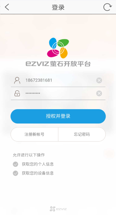 5. 你需要登录萤石摄像头的账号,如果您没有请注册一个.